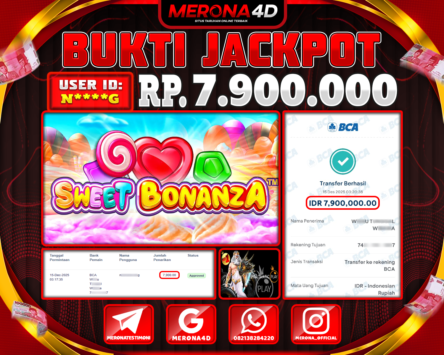 Selamat Kepada Member MERONA4D N****G Telah Jackpot Di SWEET BONANZA