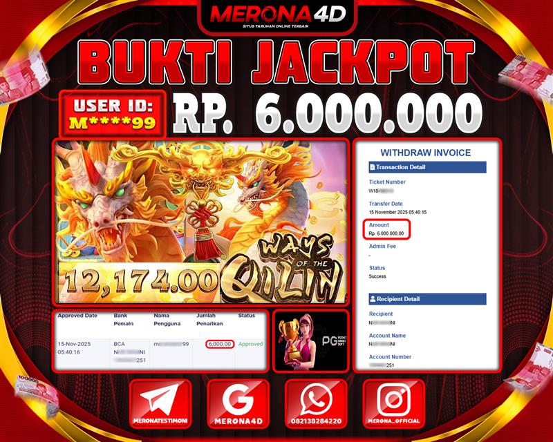 Selamat Kepada Member MERONA4D M*****99 Telah Jackpot Di WAYS OF THE QILIN