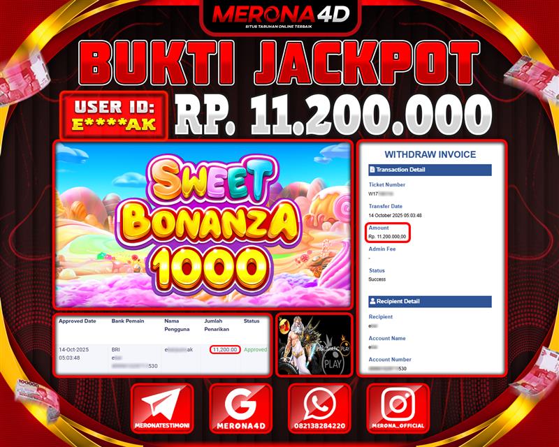 Selamat Kepada Member MERONA4D E*****AK Telah Jackpot Di SWEET BONANZA 1000