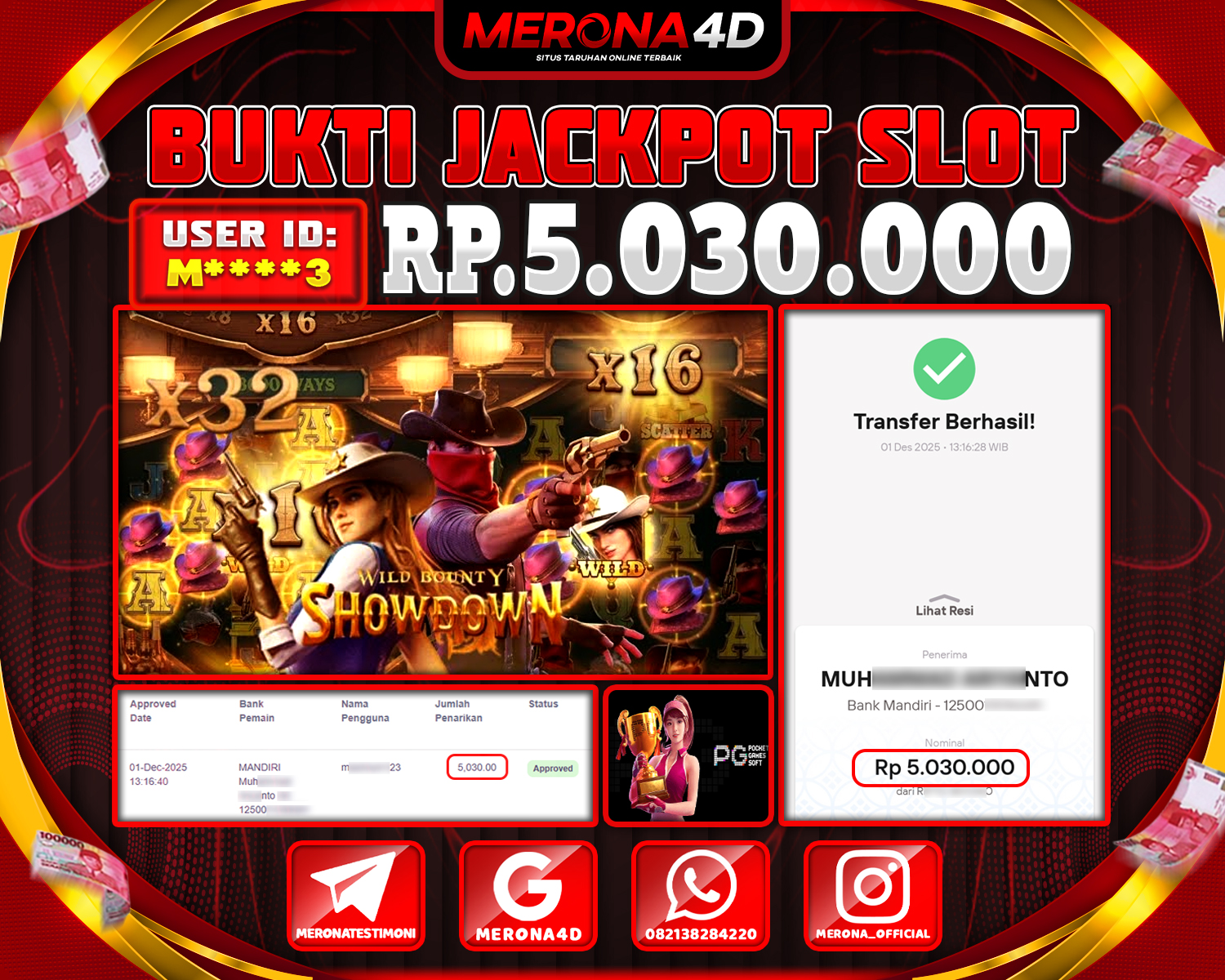Selamat Kepada Member MERONA4D Fβ­‘οΏ½***οΏ½β­‘1 Telah Jackpot Di WILD BOUNTY SHOWDOWN