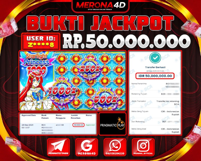 Selamat Kepada Member MERONA4D Zβ­‘οΏ½***οΏ½β­‘8 Telah Jackpot Di STARLIGHT PRINCESS 1000