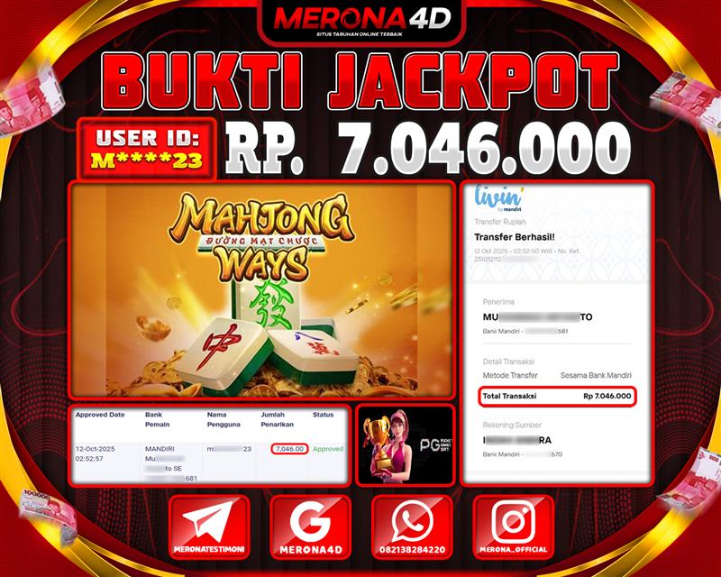 Selamat Kepada Member MERONA4D M*****23 Telah Jackpot Di MAHJONG WAYS