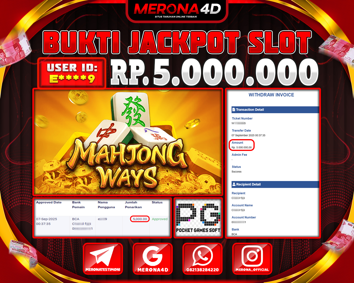 Selamat Kepada Member MERONA4D E****9 Telah Jackpot Di MAHJONG WAYS