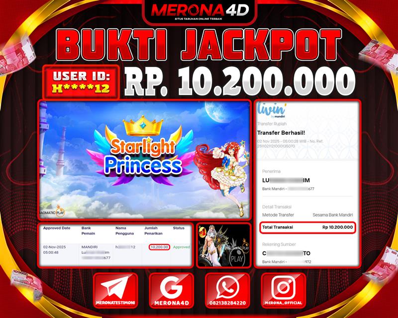 Selamat Kepada Member MERONA4D H*****12 Telah Jackpot Di STARLIGHT PRINCESS
