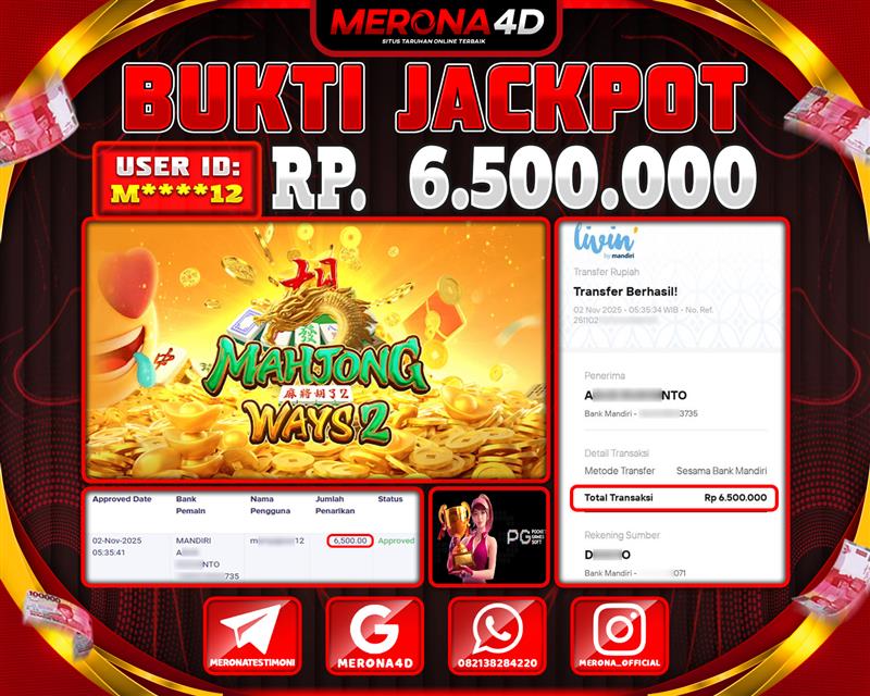 Selamat Kepada Member MERONA4D M*****12 Telah Jackpot Di MAHJONG WAYS 2