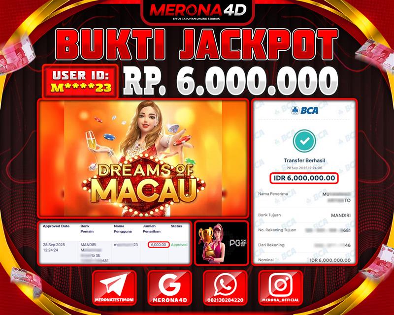 Selamat Kepada Member MERONA4D M****3 Telah Jackpot Di DREAMS OF MACAU