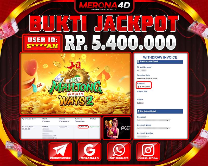 Selamat Kepada Member MERONA4D S*****AN Telah Jackpot Di MAHJONG WAYS 2