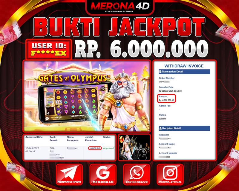 Selamat Kepada Member MERONA4D B****T Telah Jackpot Di SLOT88 OLYMPUS 1000
