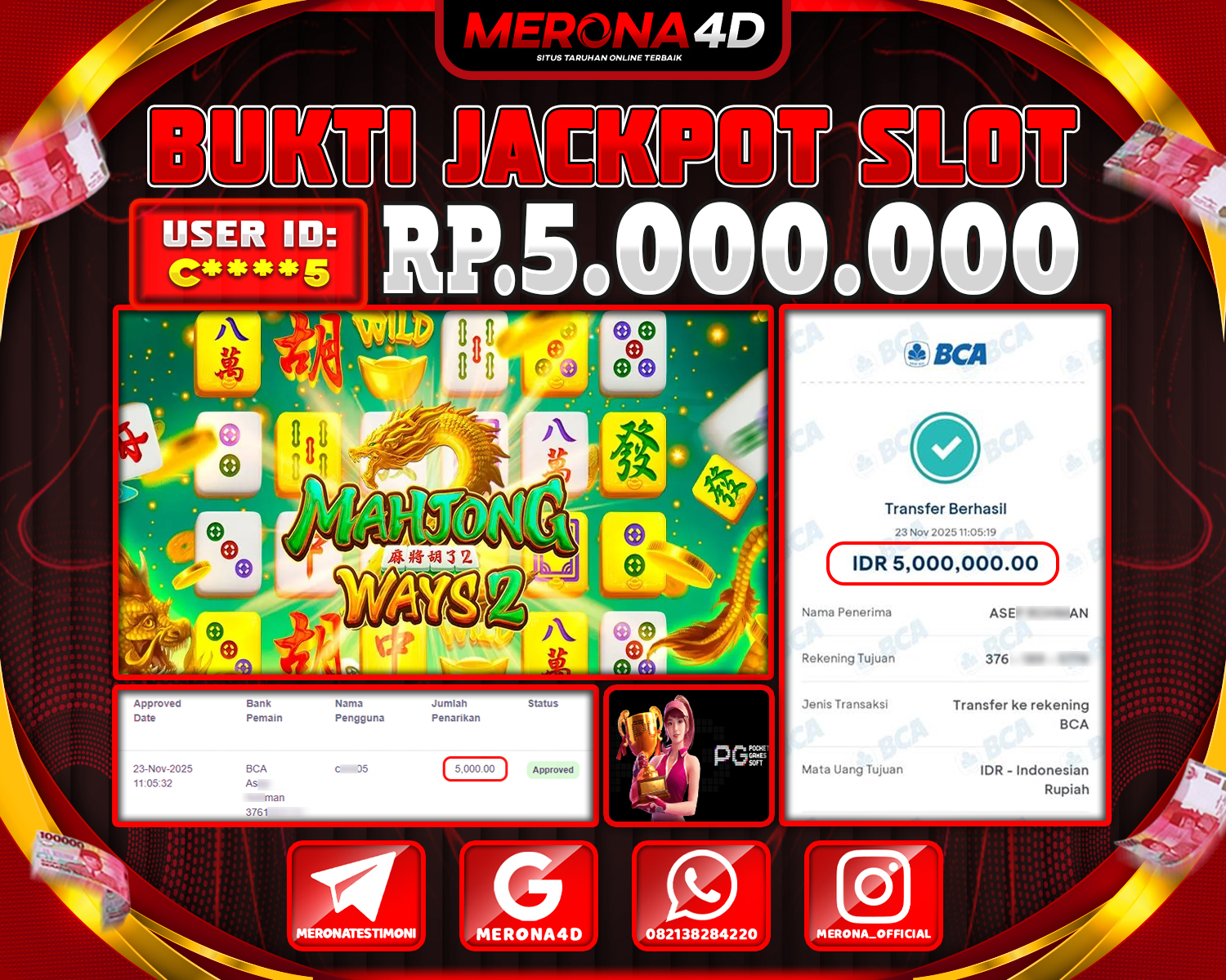 Selamat Kepada Member MERONA4D C****5 Telah Jackpot Di MAHJONG WAYS 2
