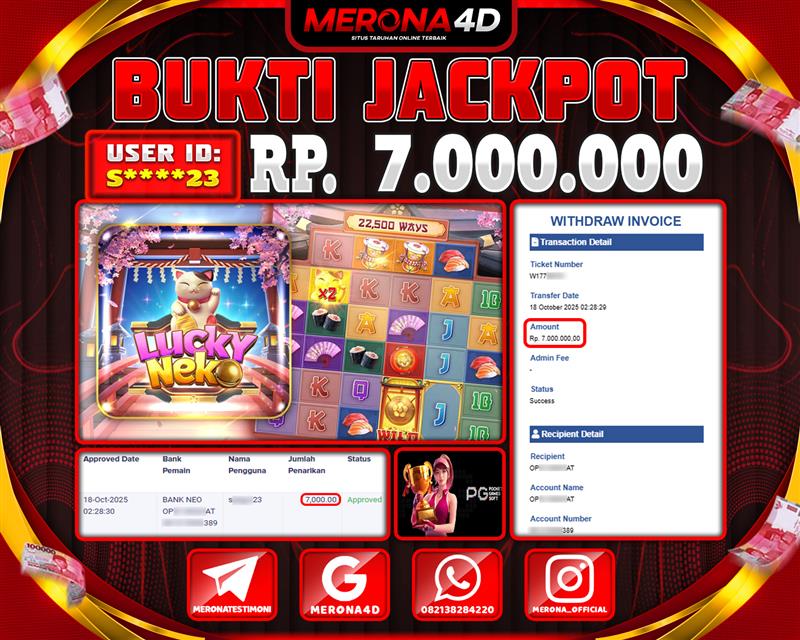 Selamat Kepada Member MERONA4D S*****23 Telah Jackpot Di LUCKY NEKO