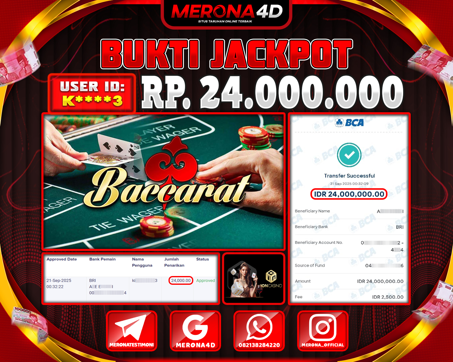 Selamat Kepada Member MERONA4D K****3 Telah Jackpot Di BACCARAT