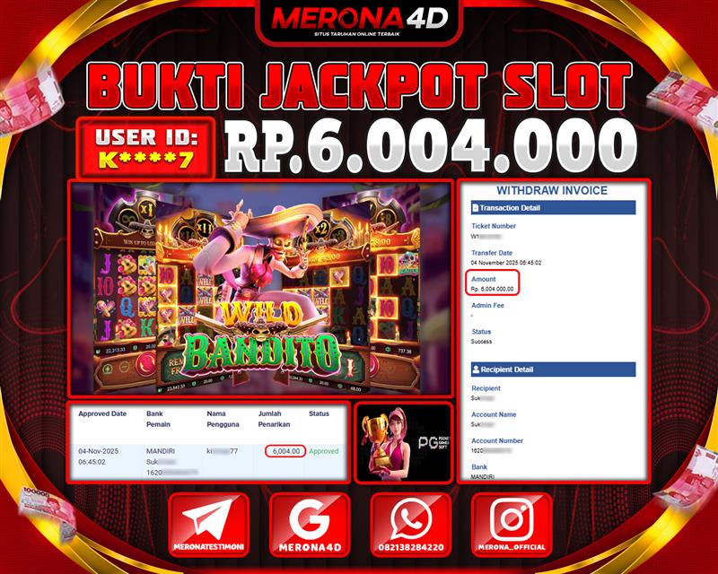 Selamat Kepada Member MERONA4D K*****7 Telah Jackpot Di WILD BANDITO
