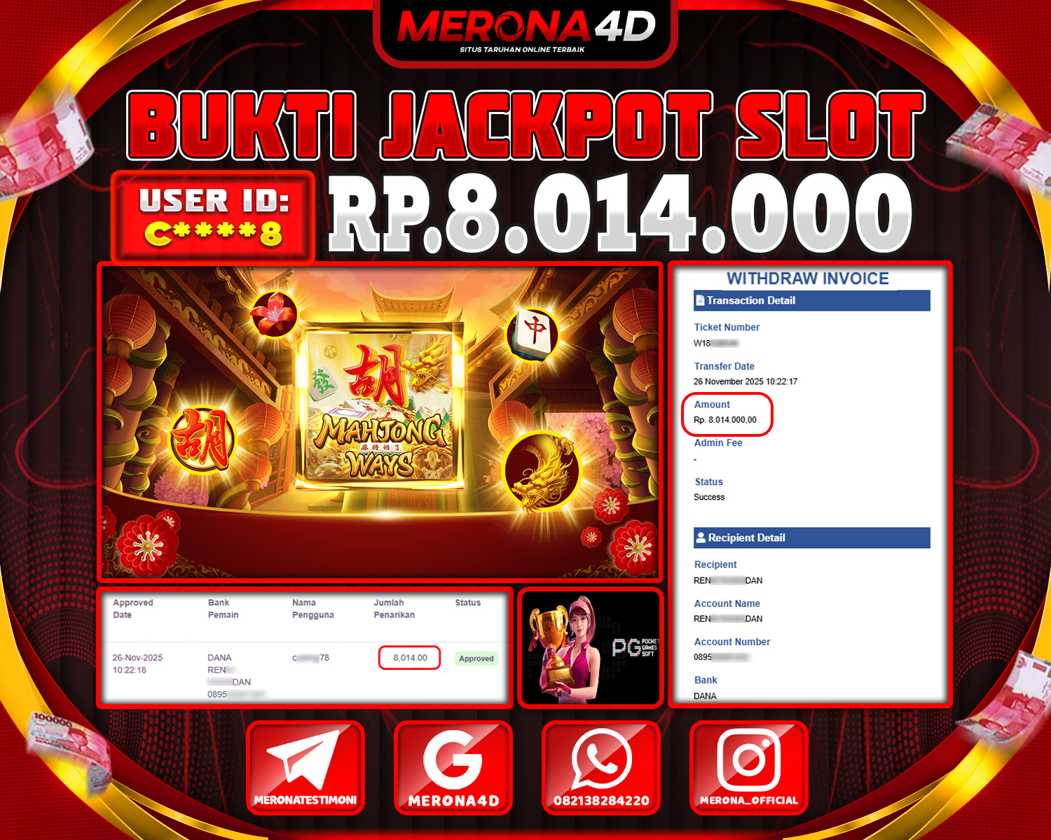 Selamat Kepada Member MERONA4D C****8 Telah Jackpot Di MAHJONG WAYS