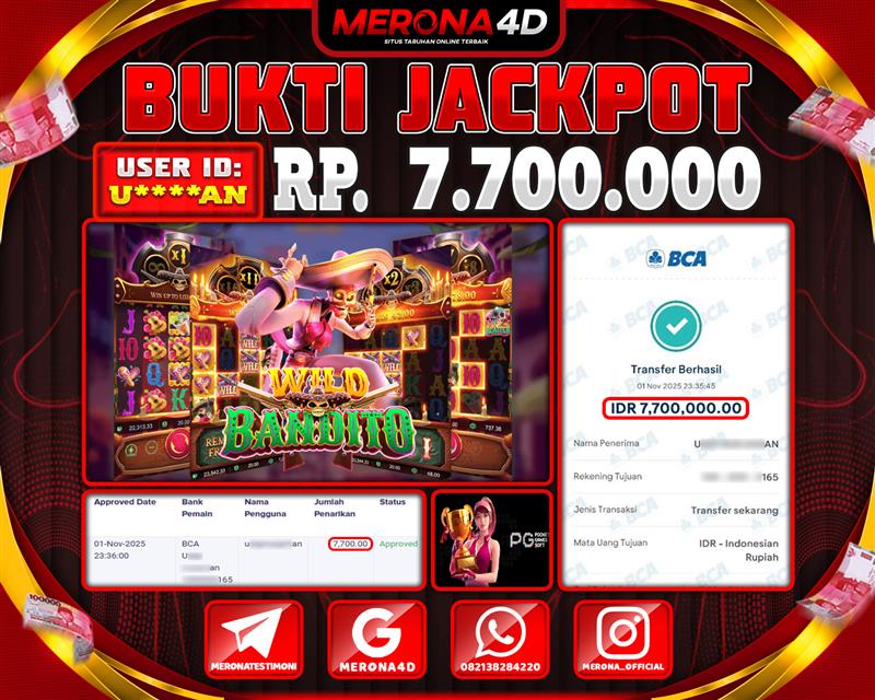 Selamat Kepada Member MERONA4D U*****AN Telah Jackpot Di WILD BANDITO