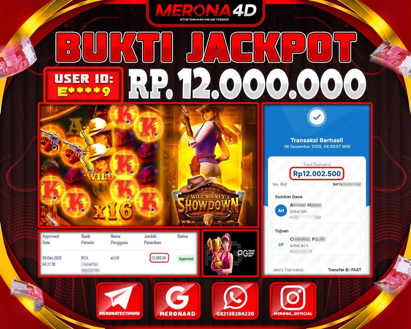 Selamat Kepada Member MERONA4D M****1 Telah Jackpot Di WILD BOUNTY SHOWDOWN