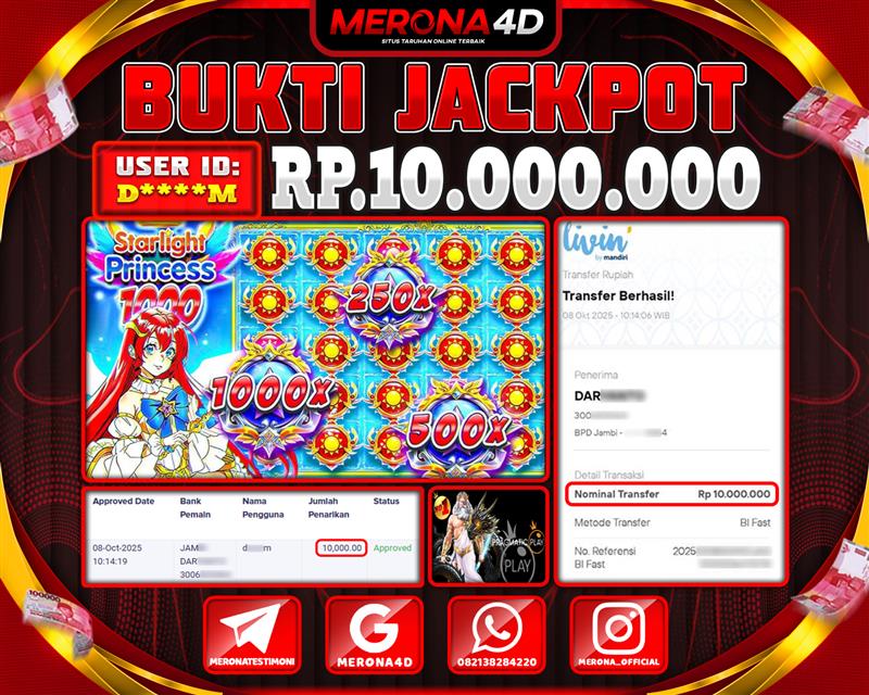 Selamat Kepada Member MERONA4D D*****M Telah Jackpot Di STARLIGHT PRINCESS 1000
