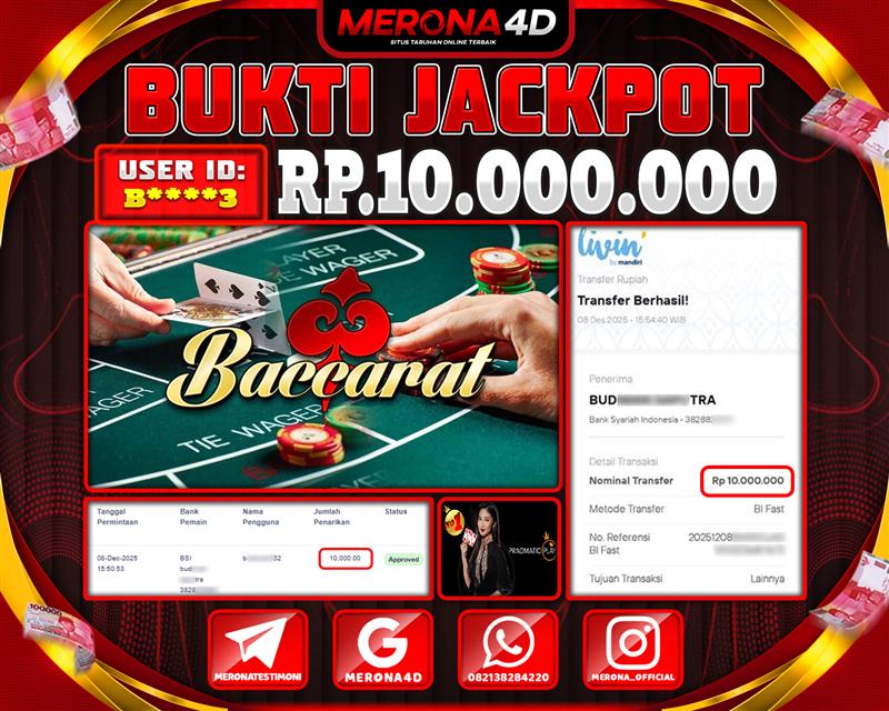 Selamat Kepada Member MERONA4D B*****3 Telah Jackpot Di BACCARAT
