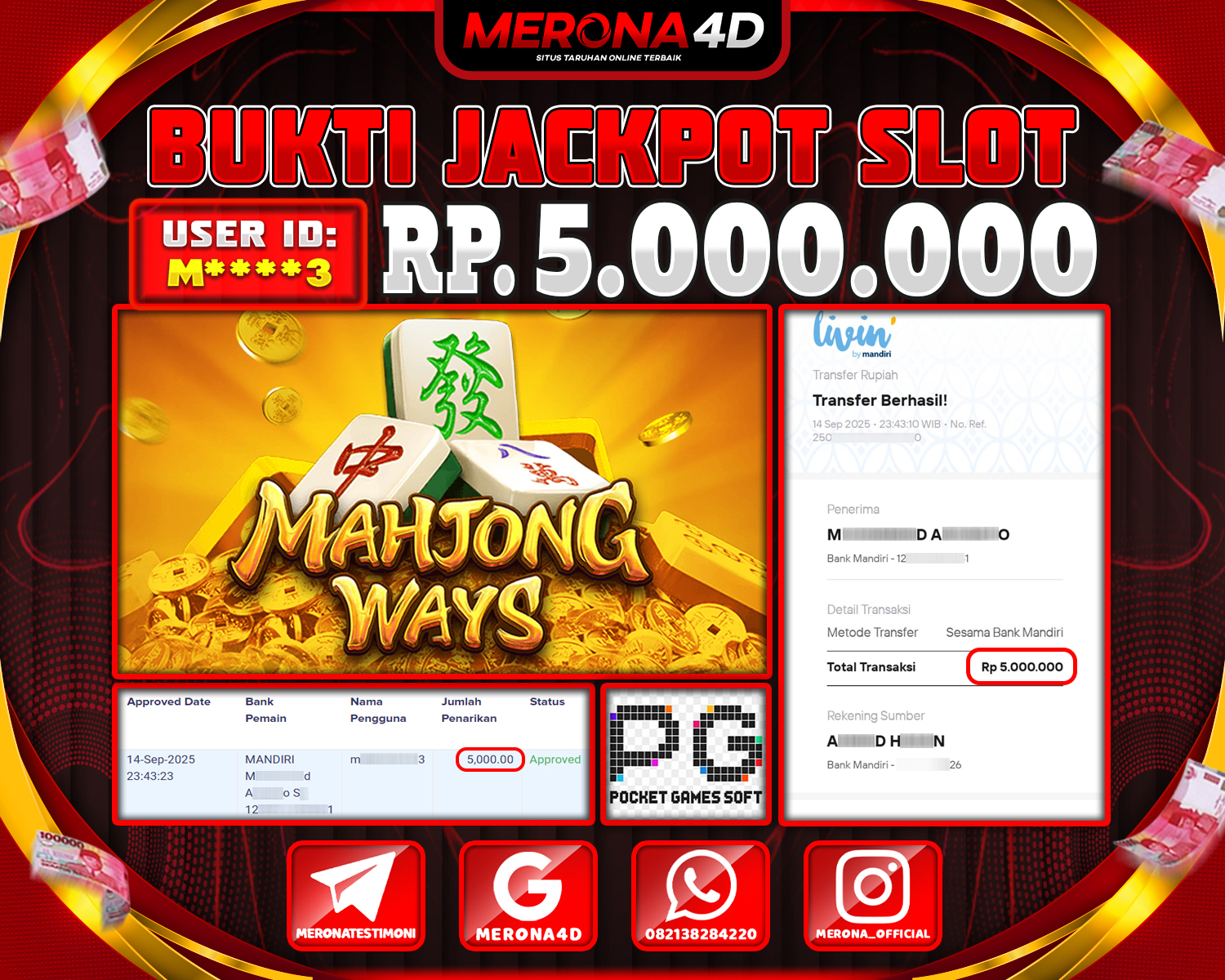 Selamat Kepada Member MERONA4D M****3 Telah Jackpot Di MAHJONG WAYS