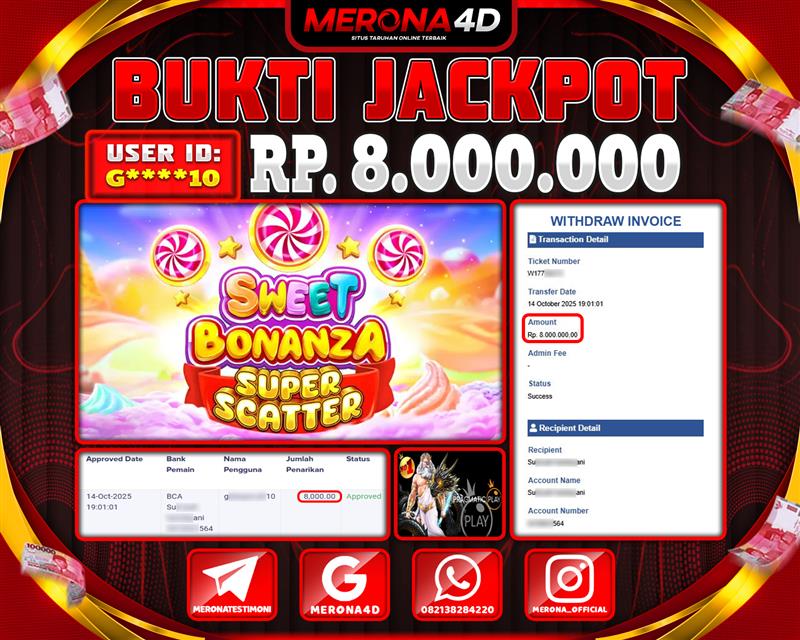 Selamat Kepada Member MERONA4D G*****10 Telah Jackpot Di SWEET BONANZA SUPER SCATTER
