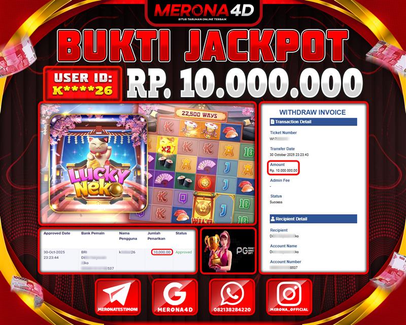 Selamat Kepada Member MERONA4D K*****26 Telah Jackpot Di LUCKY NEKO