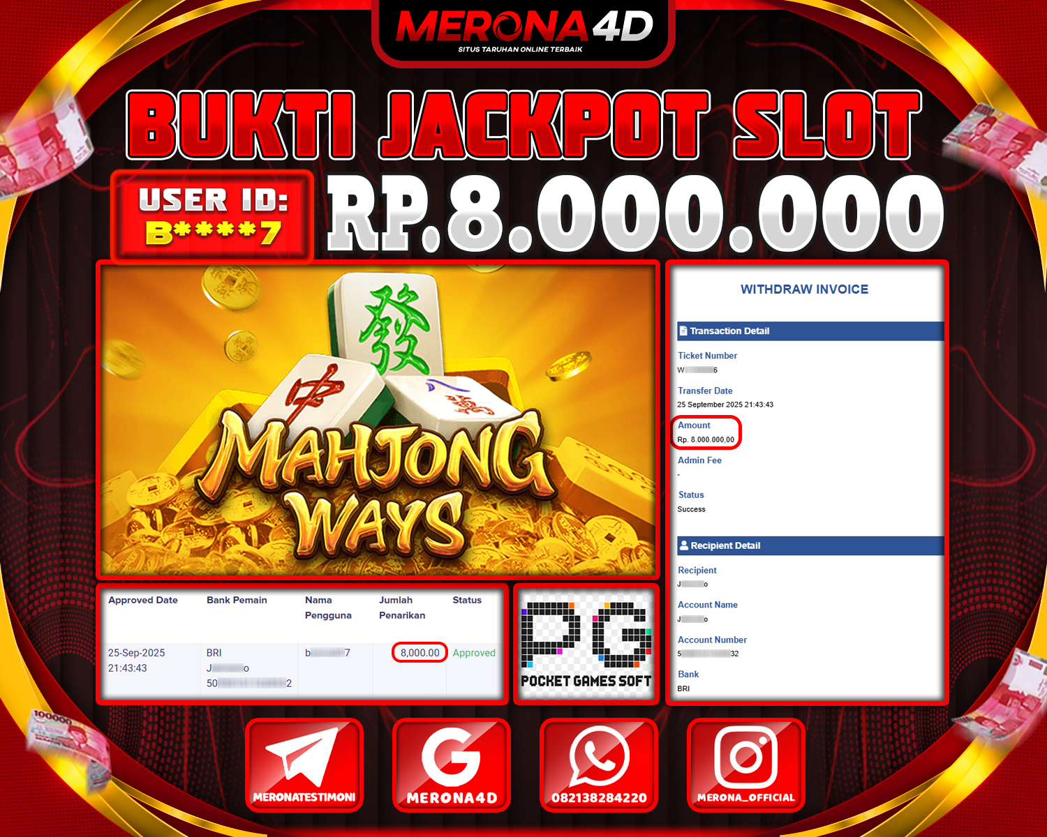 Selamat Kepada Member MERONA4D B****7 Telah Jackpot Di MAHJONG WAYS