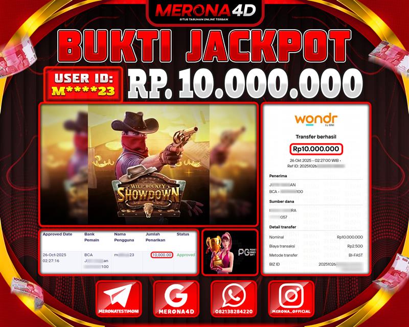 Selamat Kepada Member MERONA4D M*****23 Telah Jackpot Di WILD BOUNTY SHOWDOWN