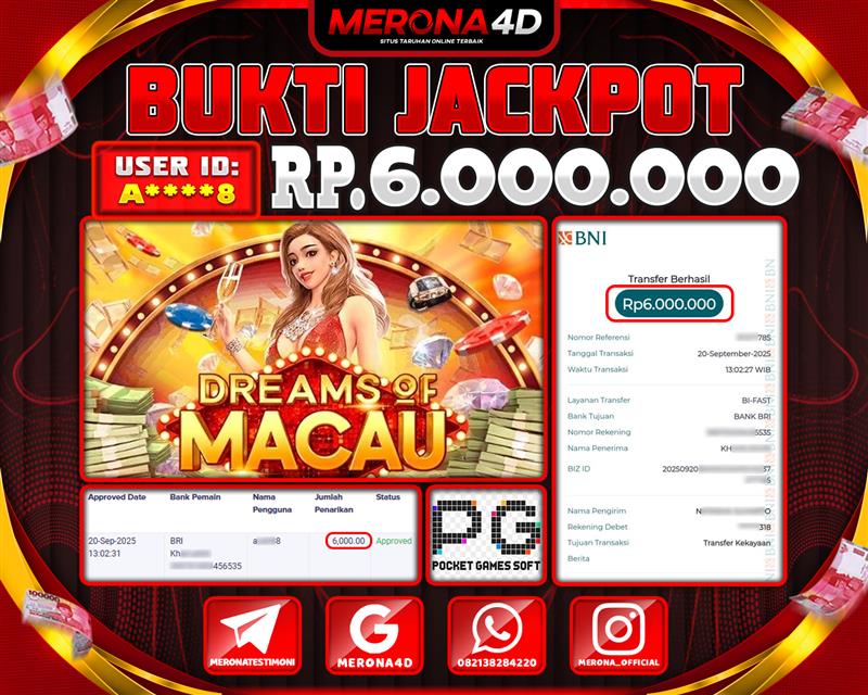 Selamat Kepada Member MERONA4D A*****8 Telah Jackpot Di DREAMS OF MACAU
