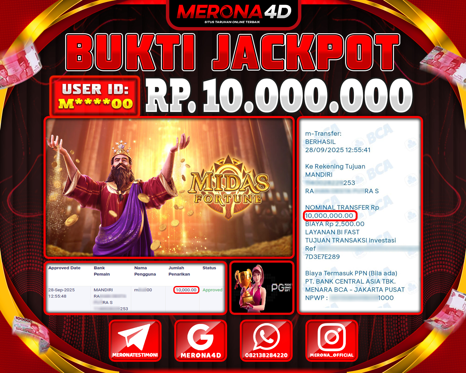 Selamat Kepada Member MERONA4D M****0 Telah Jackpot Di MIDAS FORTUNE