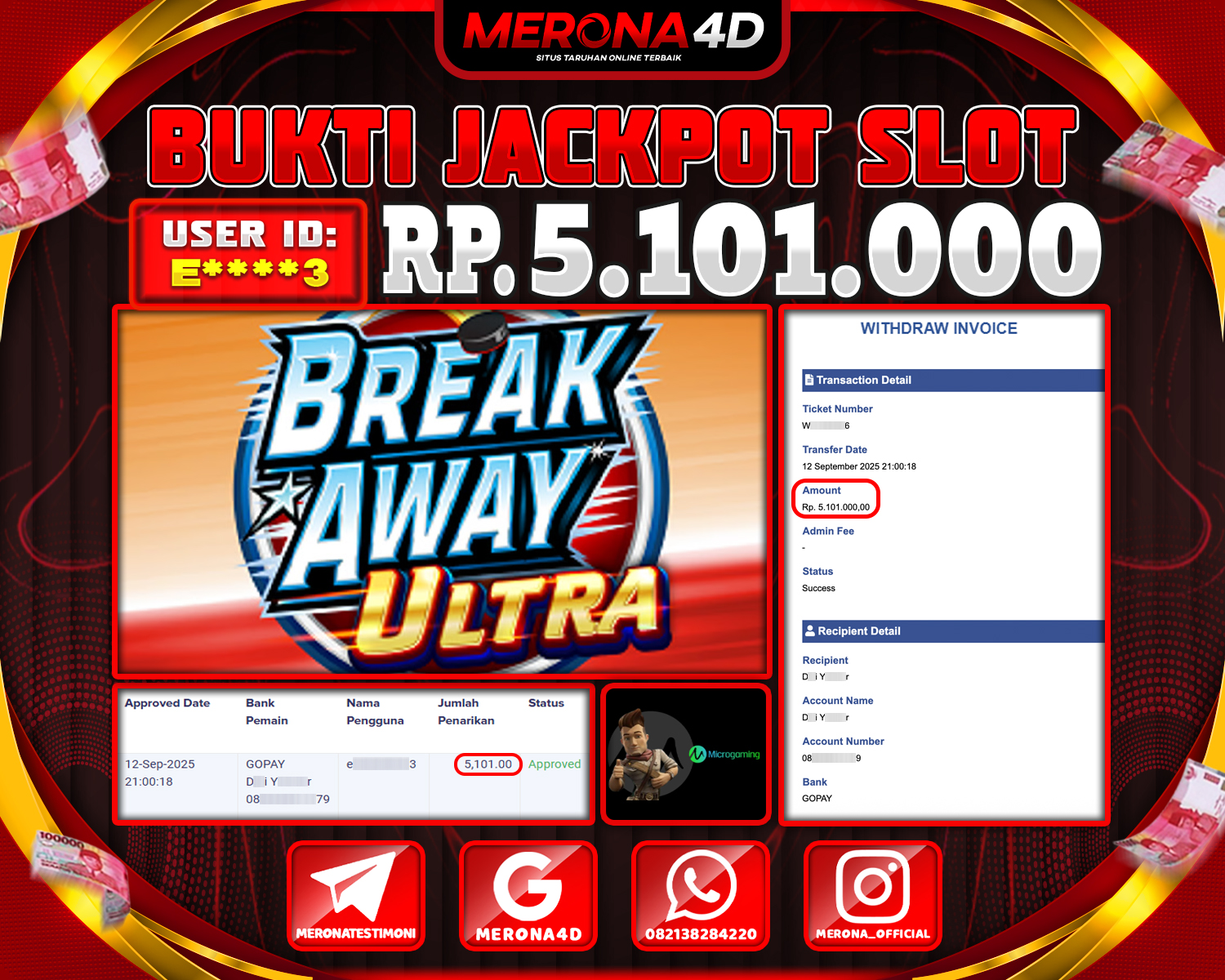 Selamat Kepada Member MERONA4D E****3 Telah Jackpot Di BREAK AWAY ULTRA