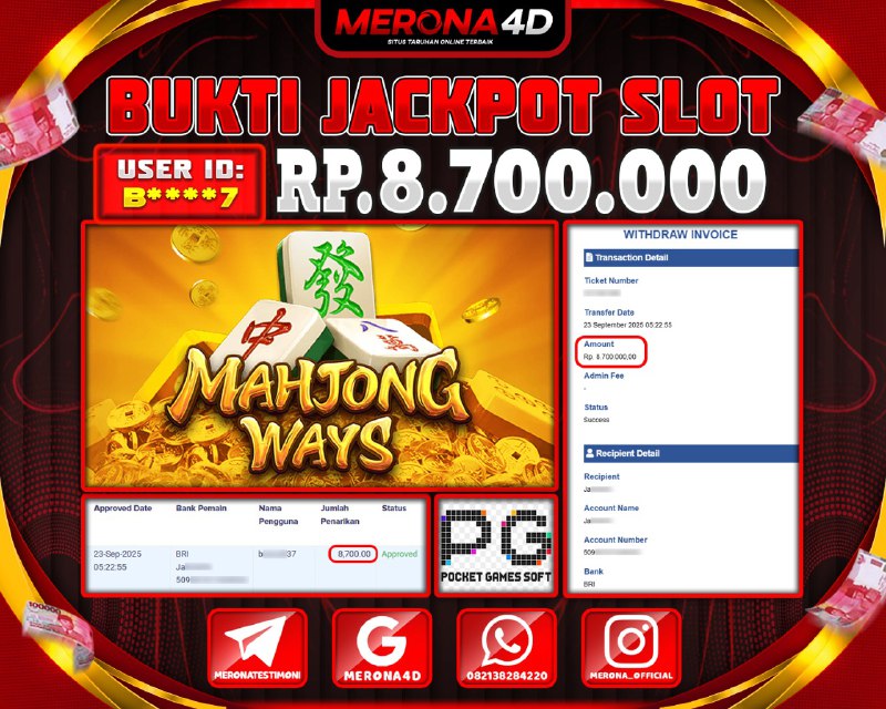 Selamat Kepada Member MERONA4D Bβ­‘οΏ½***οΏ½β­‘7 Telah Jackpot Di MAHJONG WAYS