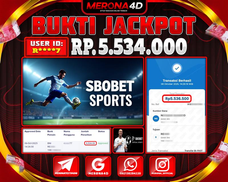 Selamat Kepada Member MERONA4D R****7 Telah Jackpot Di SBO SPORTS BOOK