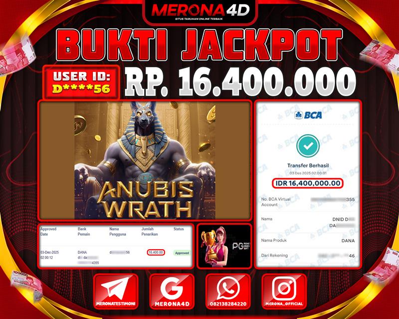 Selamat Kepada Member MERONA4D D*****56 Telah Jackpot Di ANUBIS WRATH