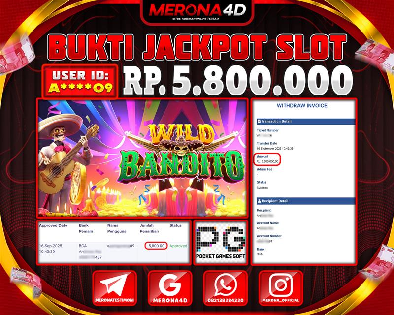 Selamat Kepada Member MERONA4D A*****9 Telah Jackpot Di WILD BANDITO