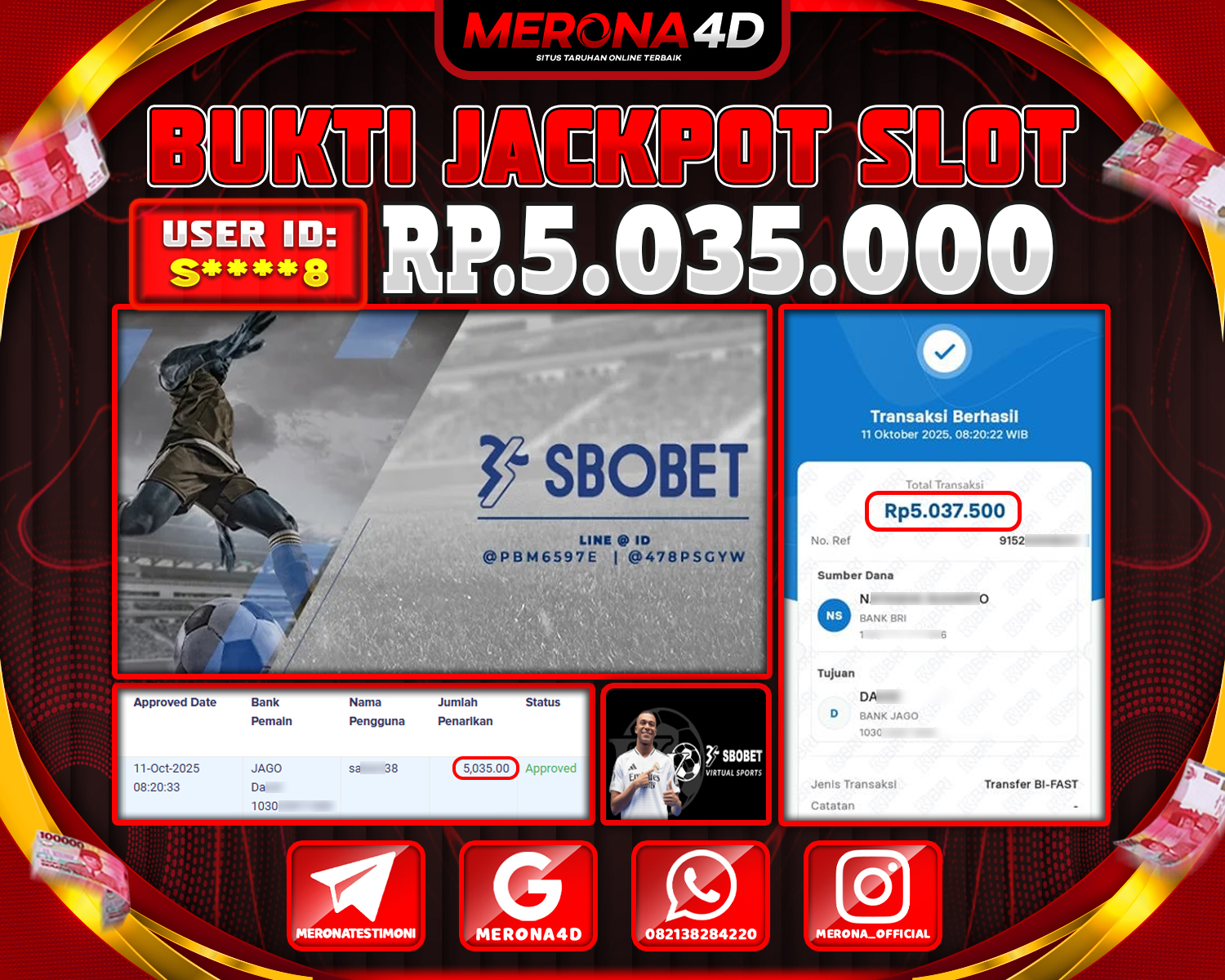 Selamat Kepada Member MERONA4D Sβ­‘οΏ½***οΏ½β­‘8 Telah Jackpot Di SBO SPORTS BOOK