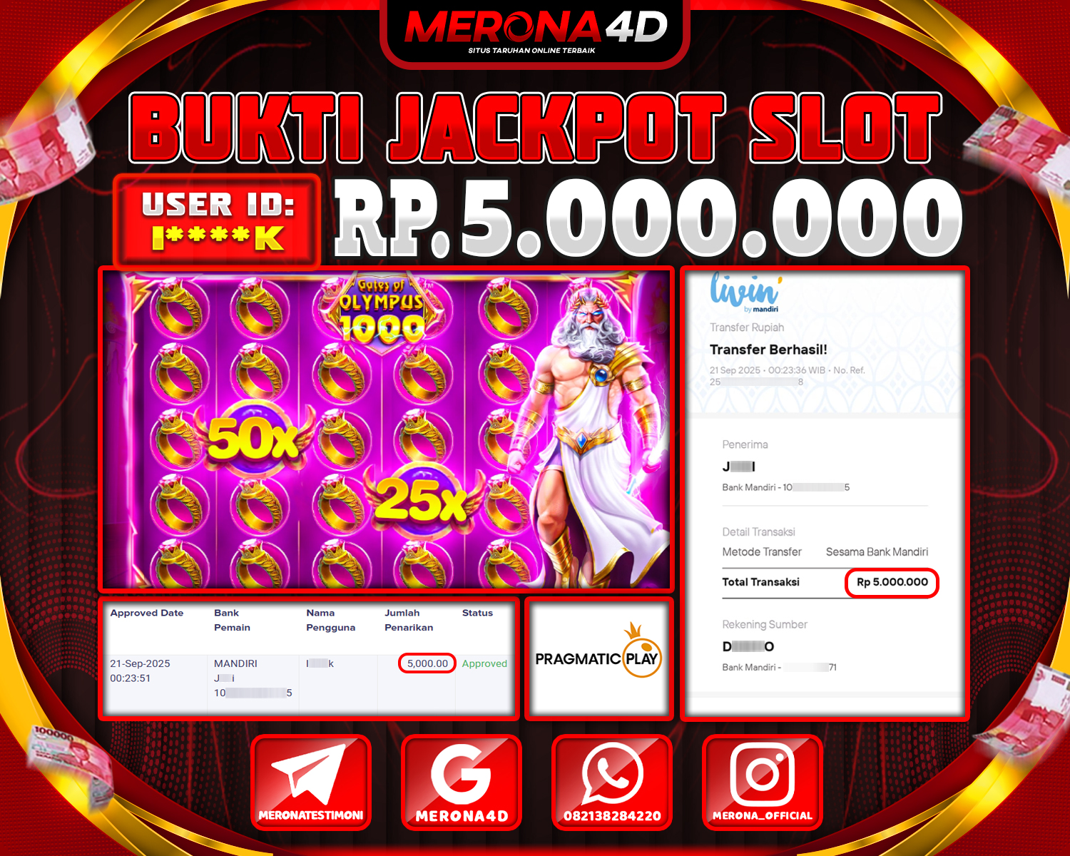 Selamat Kepada Member MERONA4D I****K Telah Jackpot Di GATES OF OLYMPUS 1000