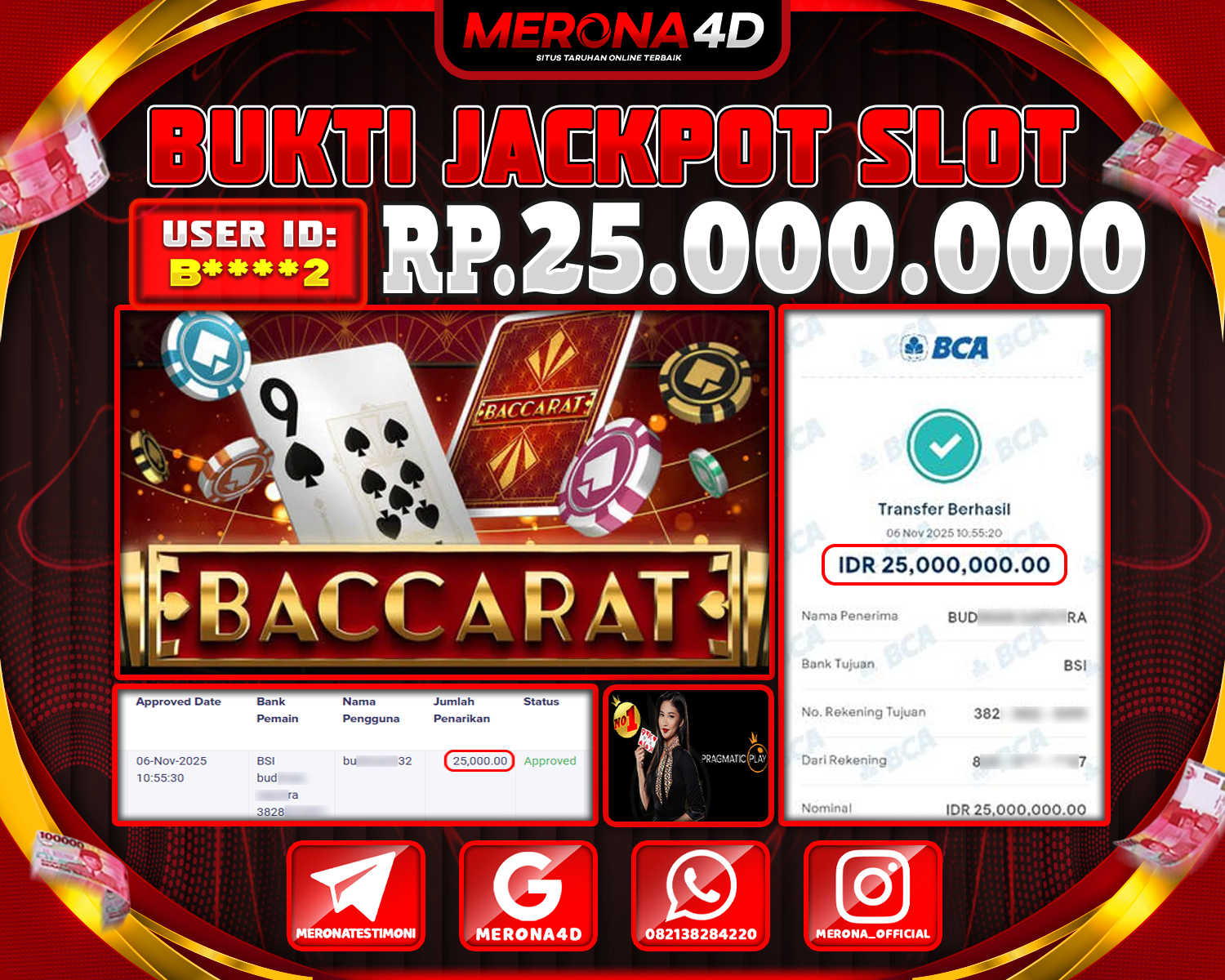 Selamat Kepada Member MERONA4D Bβ­‘οΏ½***οΏ½β­‘2 Telah Jackpot Di BACCARAT