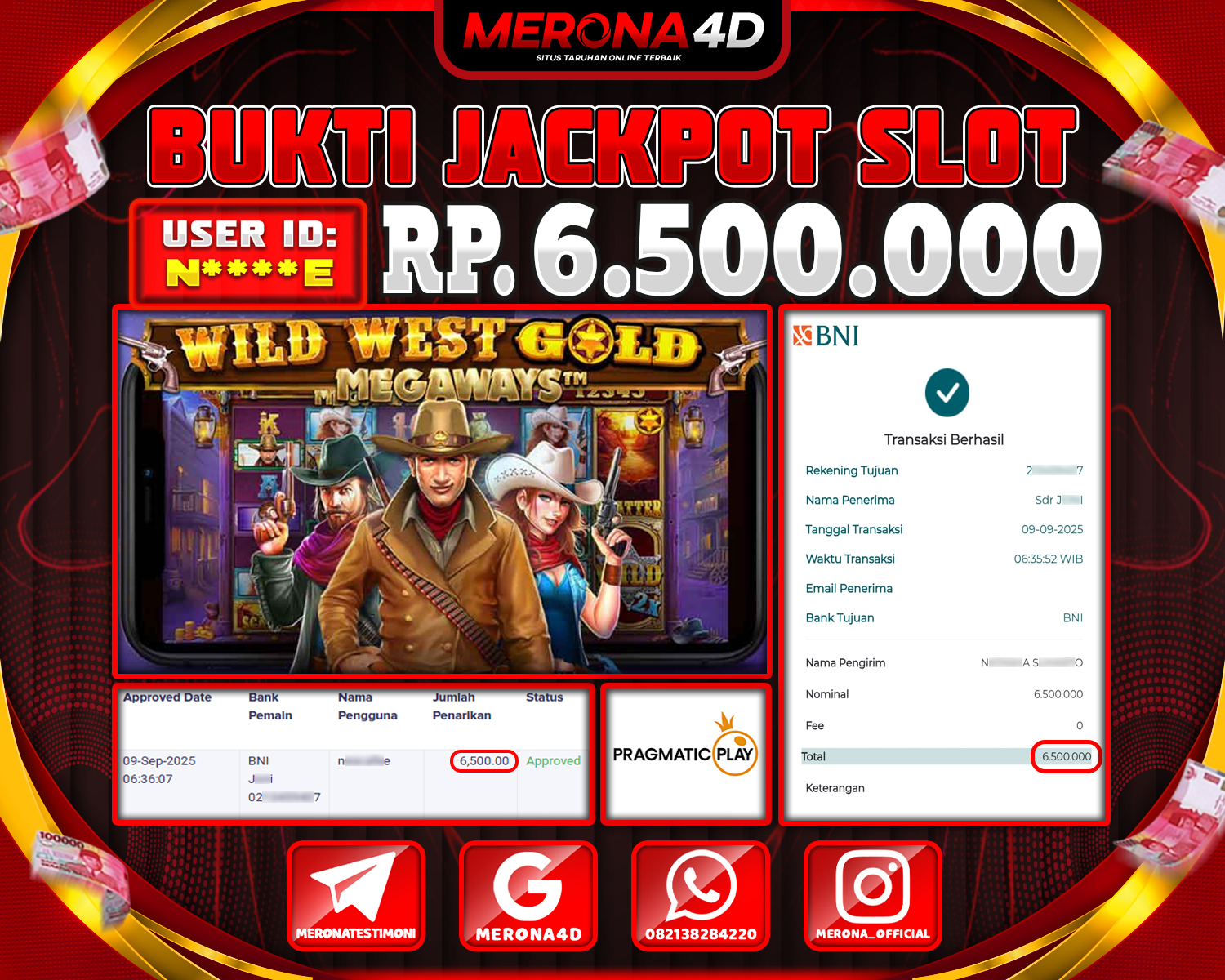 Selamat Kepada Member MERONA4D N****E Telah Jackpot Di WILD WEST GOLD