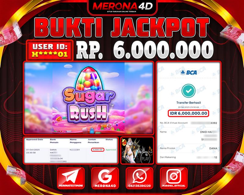 Selamat Kepada Member MERONA4D H*****01 Telah Jackpot Di SUGAR RUSH