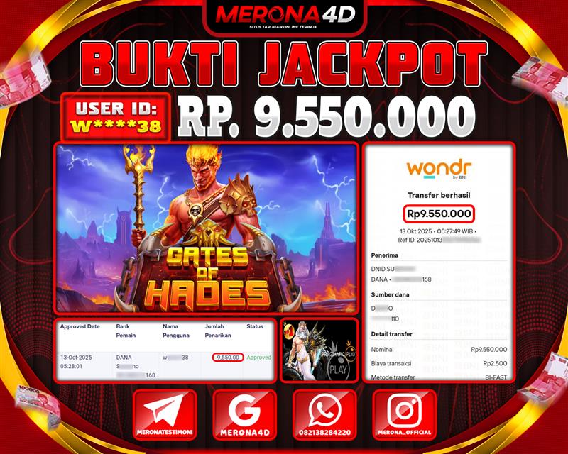 Selamat Kepada Member MERONA4D W*****38 Telah Jackpot Di GATES OF HADES
