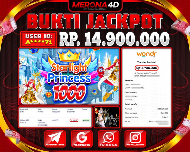 Selamat Kepada Member MERONA4D A*****71 Telah Jackpot Di STARLIGHT PRINCESS 1000