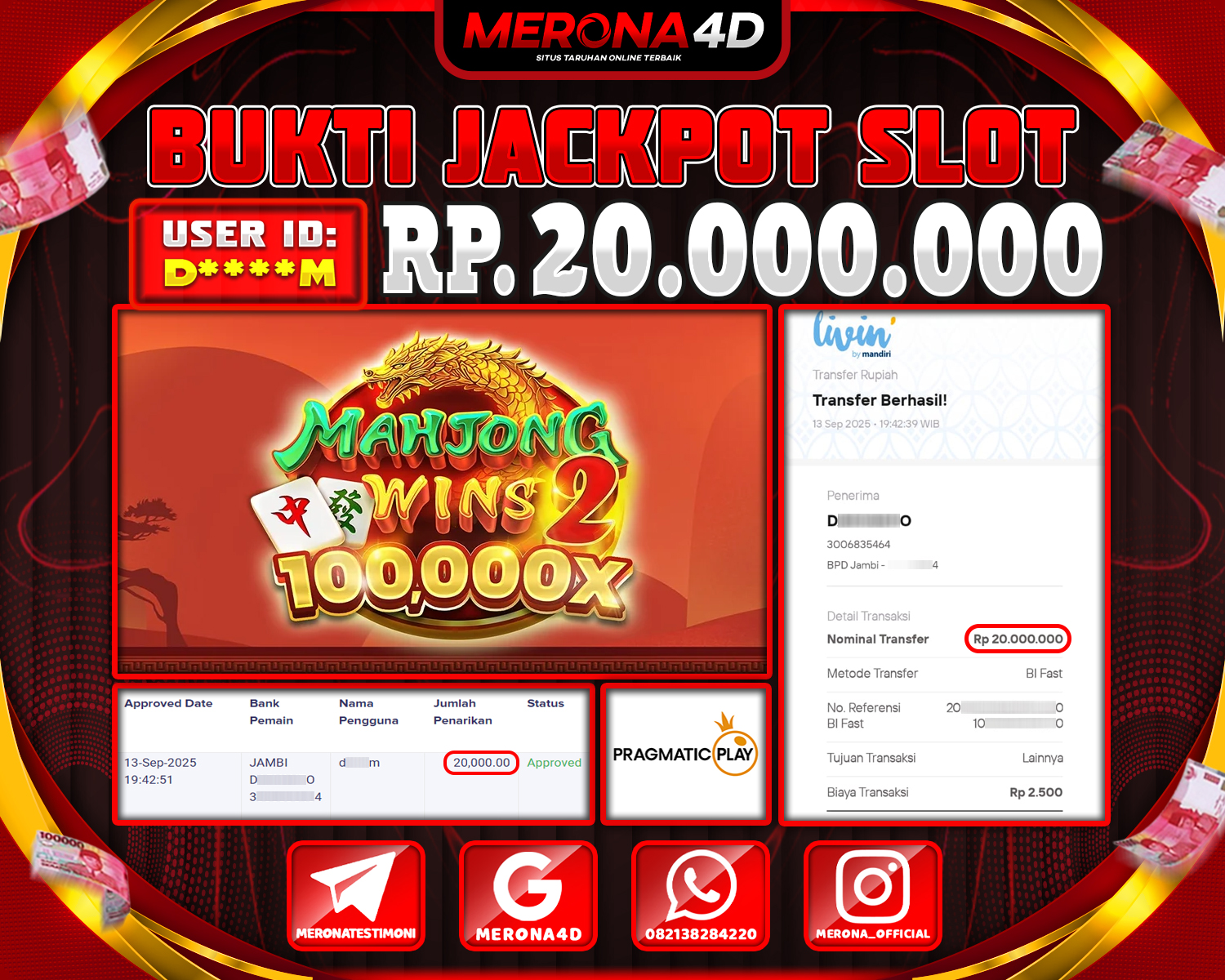 Selamat Kepada Member MERONA4D D****M Telah Jackpot Di MAHJONG WINS 2