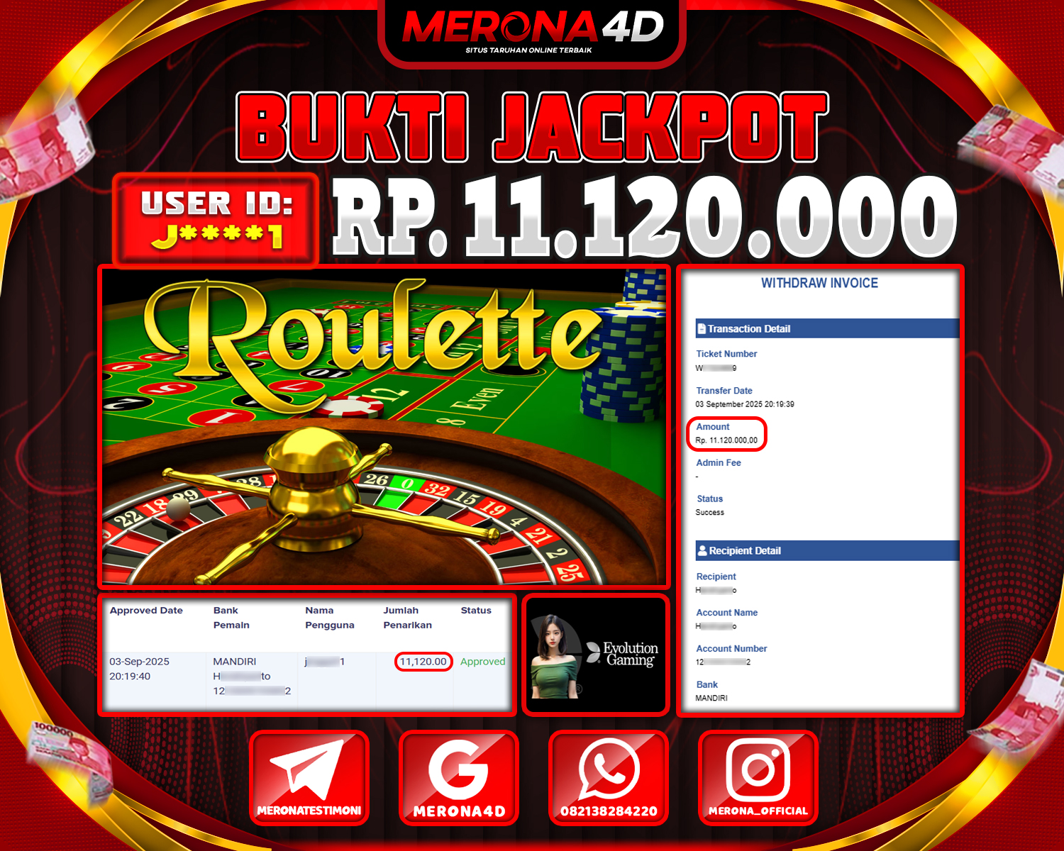 Selamat Kepada Member MERONA4D J****1 Telah Jackpot Di ROULLETE