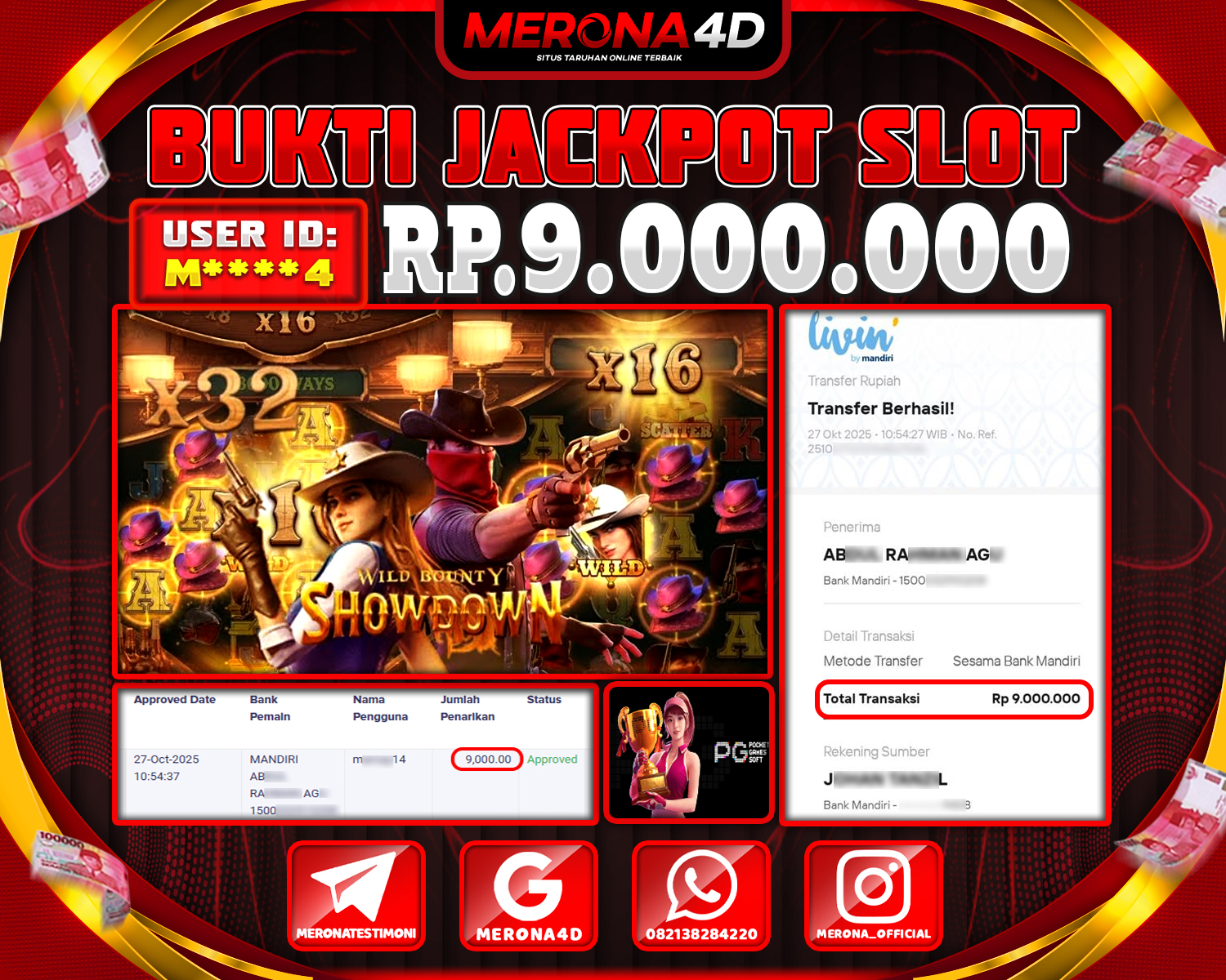 Selamat Kepada Member MERONA4D Mβ­‘οΏ½***οΏ½β­‘4 Telah Jackpot Di WILD BOUNTY SHOWDOWN