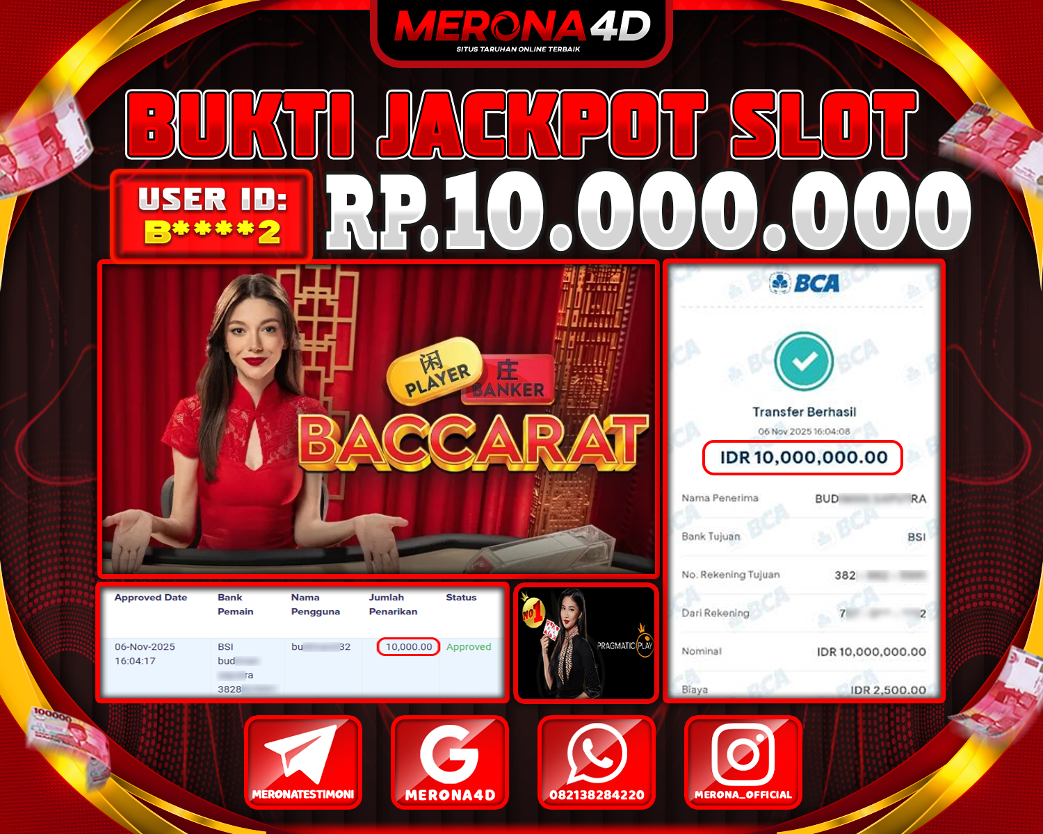 Selamat Kepada Member MERONA4D Bβ­‘οΏ½***οΏ½β­‘2 Telah Jackpot Di BACCARAT