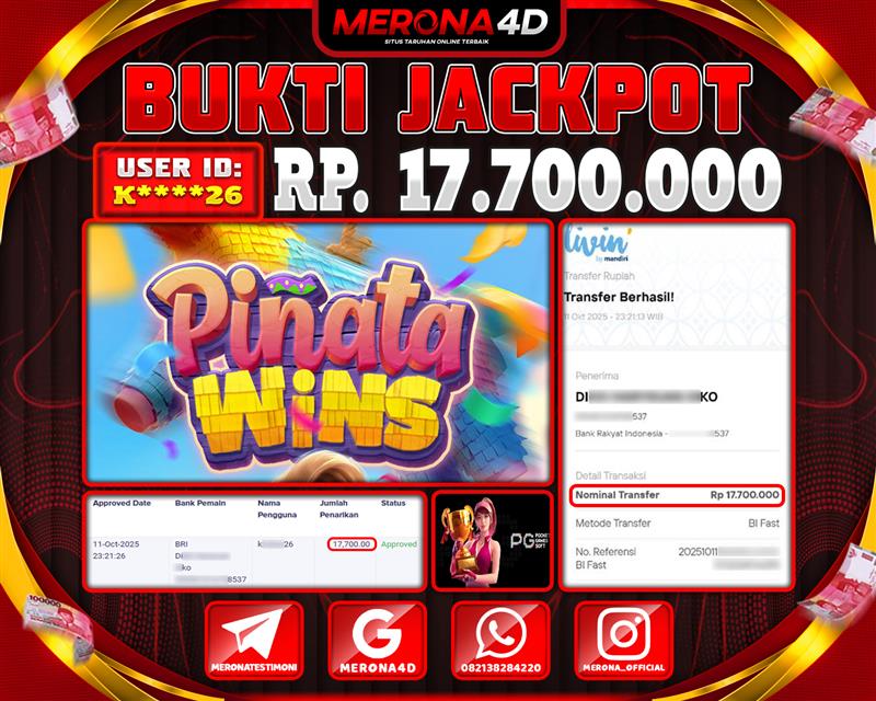 Selamat Kepada Member MERONA4D K*****26 Telah Jackpot Di PINATA WINS