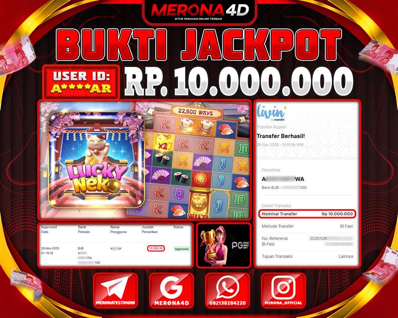Selamat Kepada Member MERONA4D A*****AR Telah Jackpot Di LUCKY NEKO