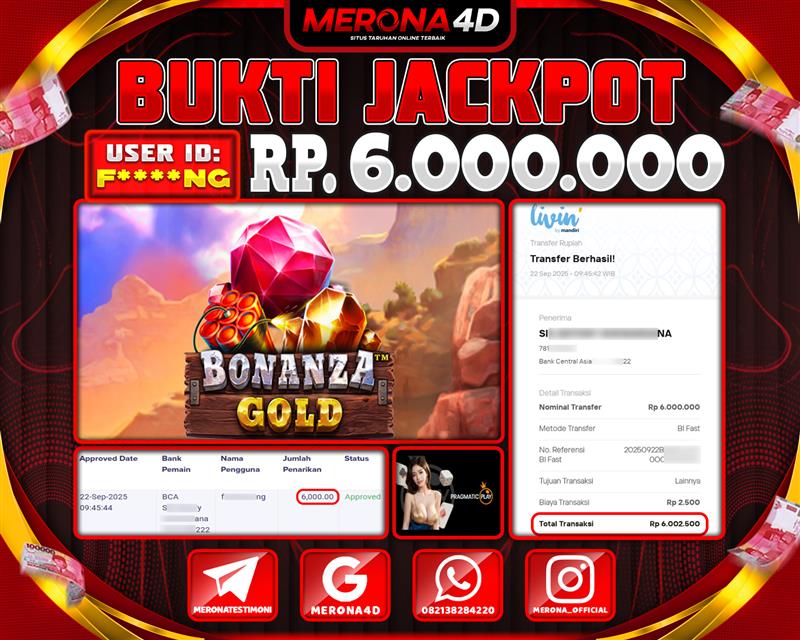 Selamat Kepada Member MERONA4D F*****G Telah Jackpot Di BONANZA GOLD