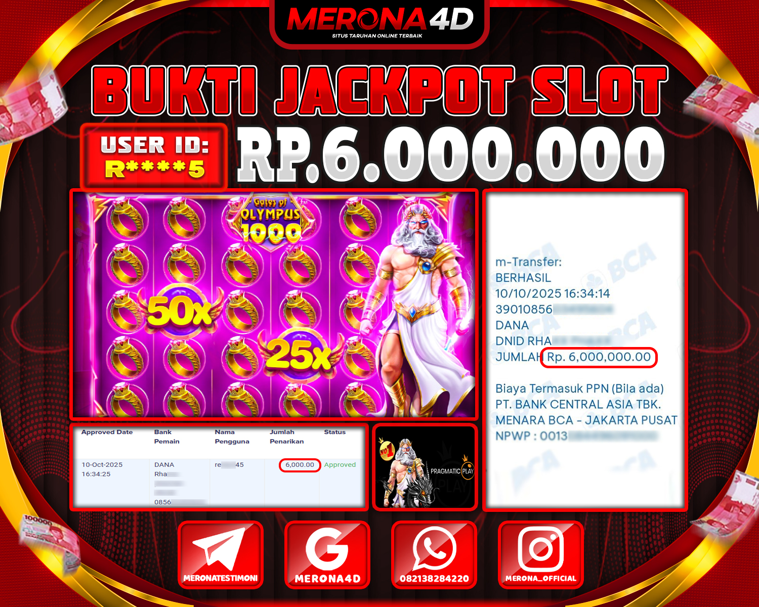 Selamat Kepada Member MERONA4D Rβ­‘οΏ½***οΏ½β­‘5 Telah Jackpot Di GATES OF OLYMPUS 1000