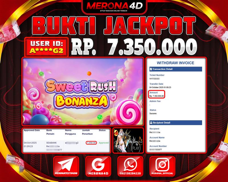 Selamat Kepada Member MERONA4D A*****G2 Telah Jackpot Di SWEET RUSH BONANZA