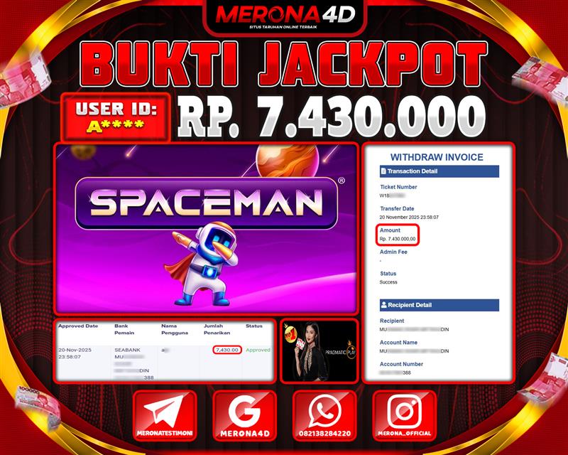 Selamat Kepada Member MERONA4D A***** Telah Jackpot Di SPACEMAN